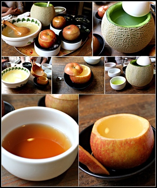 這家店中不能錯過的另一個主角就是水果燒酒。 這裏的水果燒酒主要有西瓜燒酒、哈密瓜燒酒、菠蘿燒酒、橙子燒酒、蘋果燒酒等種類,而且根據季節的不同服務員還會推薦當季糖分含量比較高的水果燒酒供客人 們選擇。所有水果燒酒都是利用新鮮水果鮮榨而成,而且店主還別出心裁的把水果做成酒杯或者酒壺。在喝酒的同時,時刻感受水果的清香。